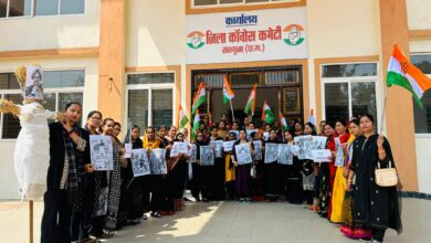 हरदीप सिंह पुरी के इस्तीफे की मांग पर सरगुजा में महिला कांग्रेस का पुतला दहन
