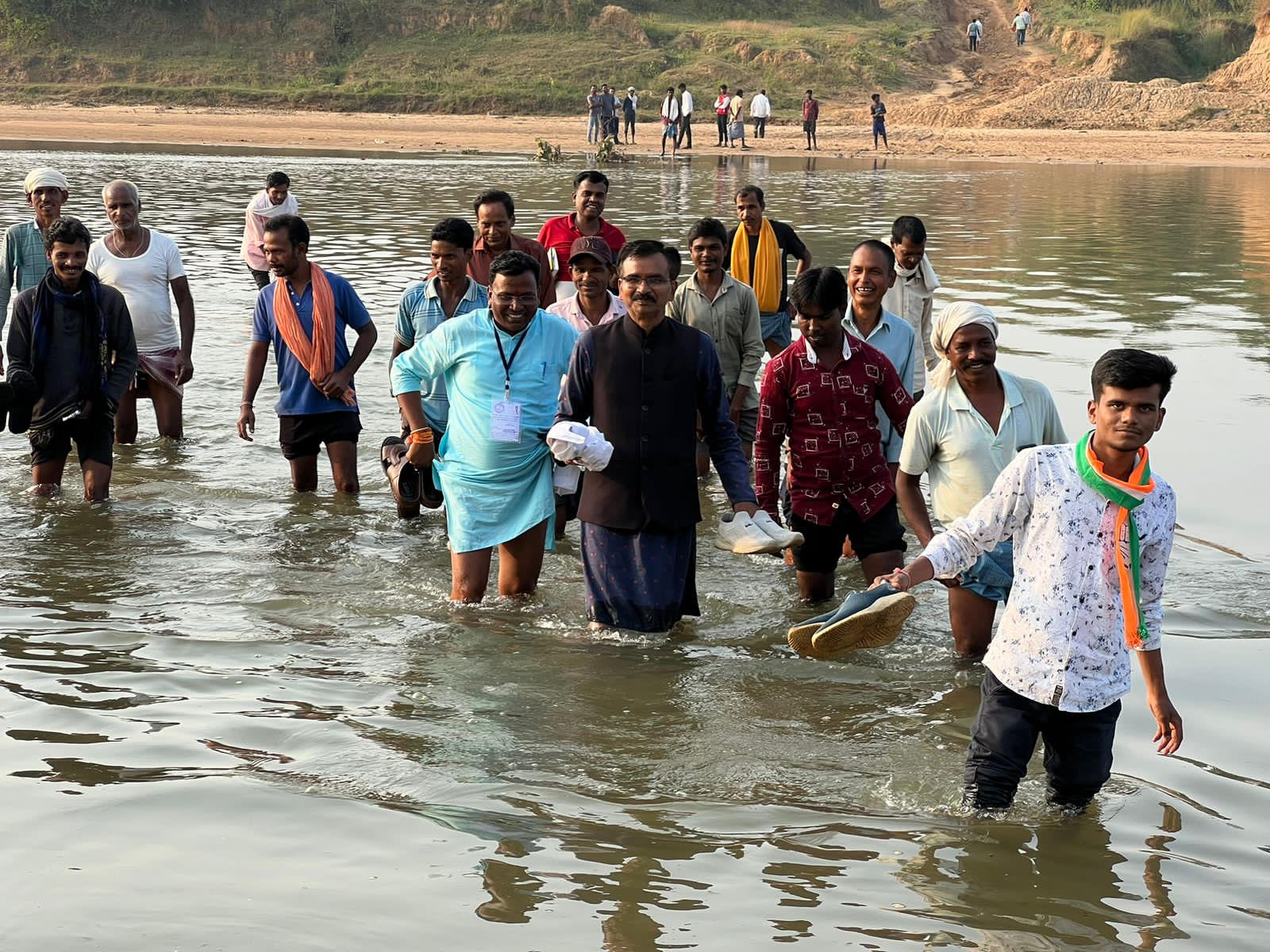 विजय पैकरा कांग्रेस के समर्थन में महान नदी पर पुल बनाने को लेकर स्थानीय लोगों से जनसंपर्क किया बलरामपुर सामरी…