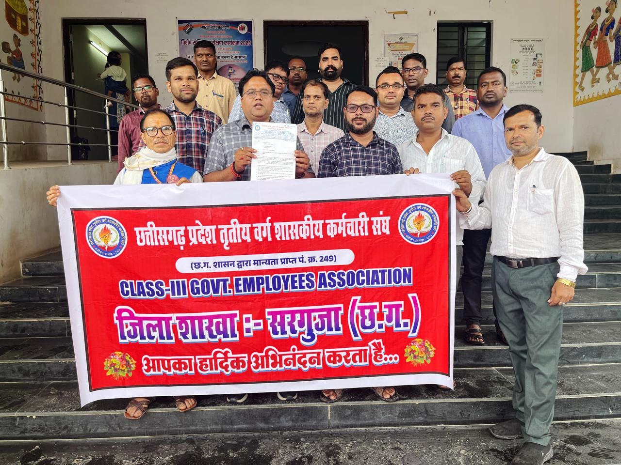 कर्मचारियों की मांगों को शीघ्र पूरा करने मुख्यमंत्री एवं मुख्य सचिव को कलेक्टर सरगुजा के माध्यम से ज्ञापन