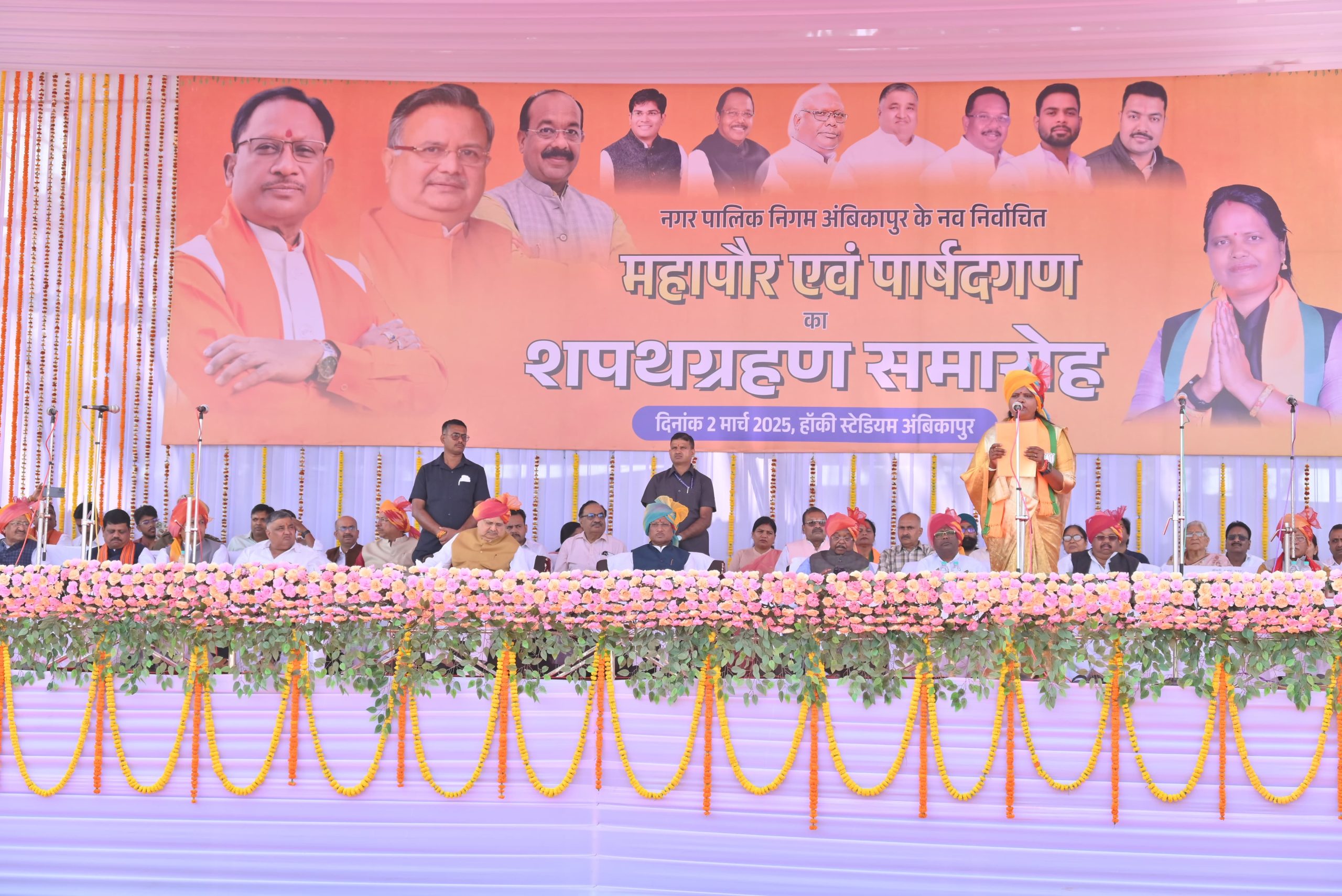 नगर निगम अंबिकापुर में नवनिर्वाचित महापौर और पार्षदों का शपथ ग्रहण समारोह सम्पन्न मुख्यमंत्री और विधानसभा अध्यक्ष ने दी शुभकामनाएं…