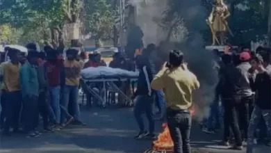 रोड रोलर कांड के बाद आरक्षक के परिजनों ने किया चक्काजाम ।