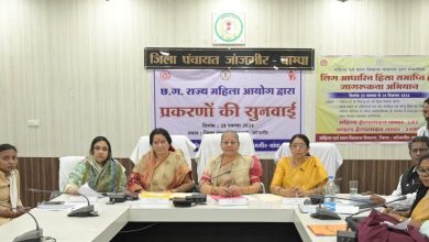 छत्तीसगढ़ राज्य महिला आयोग की अध्यक्ष एव सदस्यों ने की प्रकरणों पर जन सुनवाई प्रकरण को सुलह के लिये सखी…
