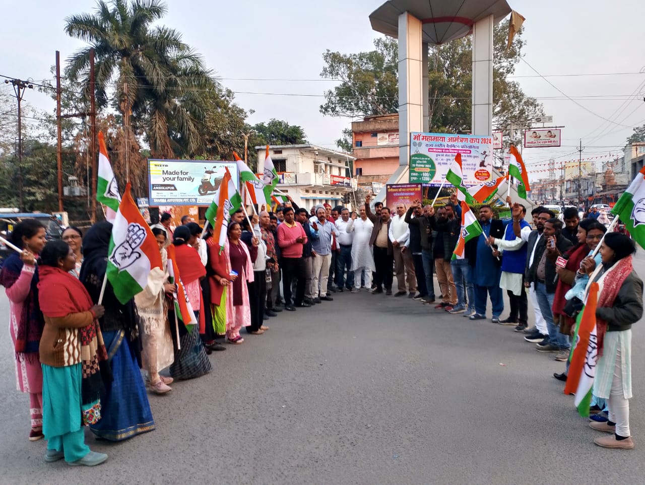 संसद के अंदर केंद्रीय गृहमंत्री अमितशाह के बाबा साहब के विरुद्ध की गई अमर्यादित टिप्पणी पर सांकेतिक प्रदर्शन।