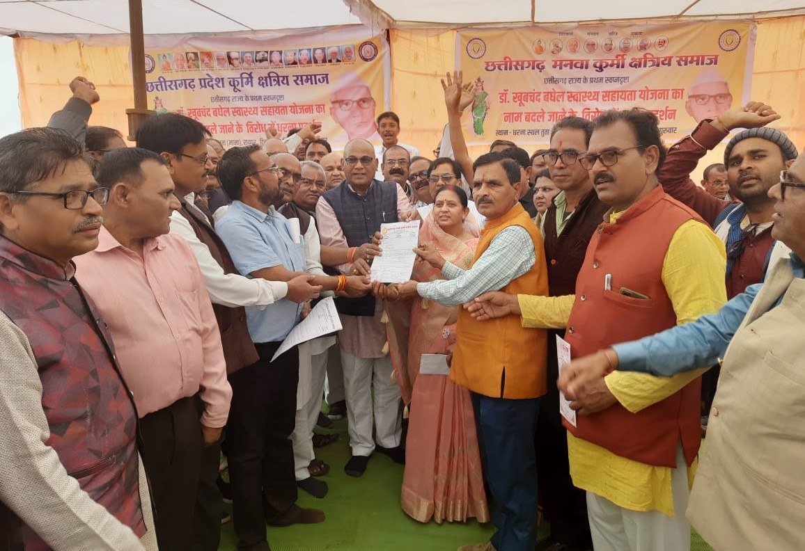 डॉ. खूबचंद बघेल स्वास्थ्य सहायता योजना के नाम बदले से अक्रोशित सर्व छत्तीसगढ़िया समाज ने धरना प्रदर्शन किया !