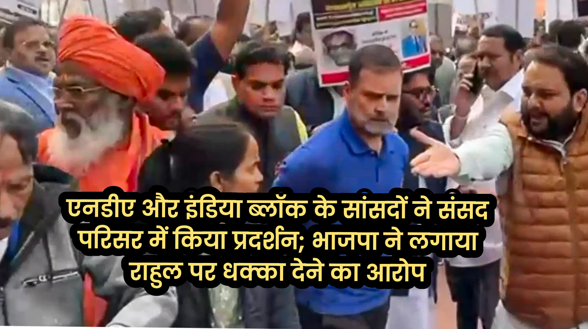 एनडीए और इंडिया ब्लॉक के सांसदों ने संसद परिसर में किया प्रदर्शन; भाजपा ने लगाया राहुल पर धक्का देने का…