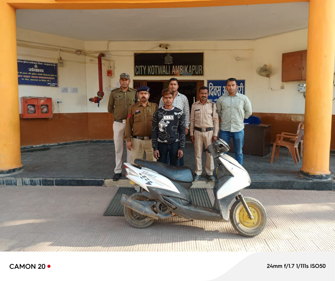 अंबिकापुर में स्कूटी चोरी का मामला सुलझा: पुलिस ने आरोपी को दबोचा, 50 हजार की स्कूटी बरामद अंबिकापुर। शहर में…