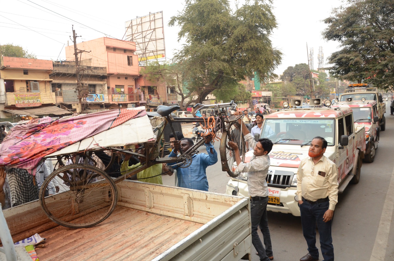 जीई रोड़ में सड़कों किनारे से ठेले हटाए जब्त किए गए 10 से अधिक स्थानों पर हटाए अतिक्रमण रायपुर /…