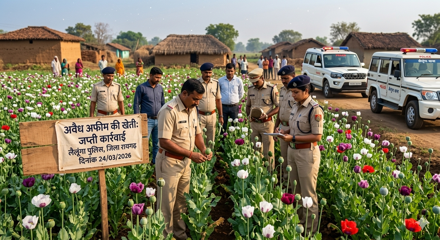रायगढ़ पुलिस का बड़ा एक्शन: लैलूंगा के नवीन घटगांव में अफीम की अवैध खेती का भंडाफोड़ बड़ी खबर: रायगढ़ के…