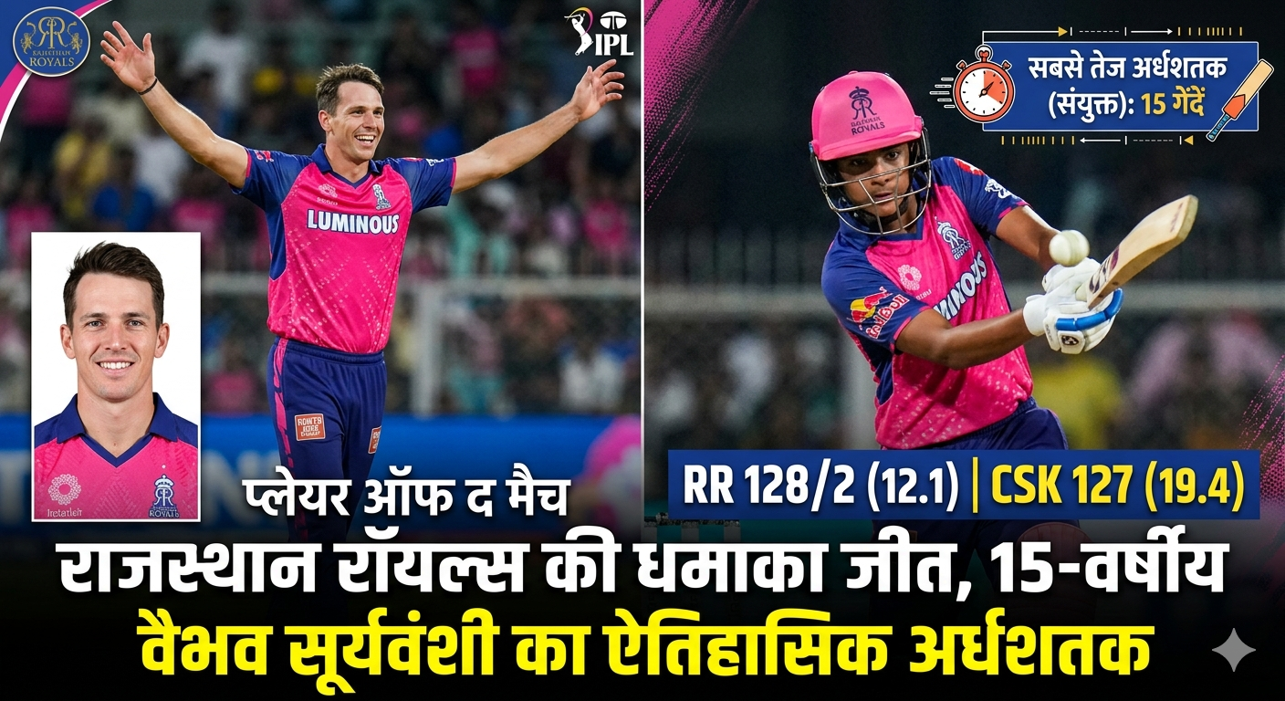 IPL 2026: राजस्थान रॉयल्स की धमाकेदार जीत, वैभव सूर्यवंशी का ऐतिहासिक अर्धशतक IPL 2026: राजस्थान का ‘राज’, चेन्नई पस्त; 15…