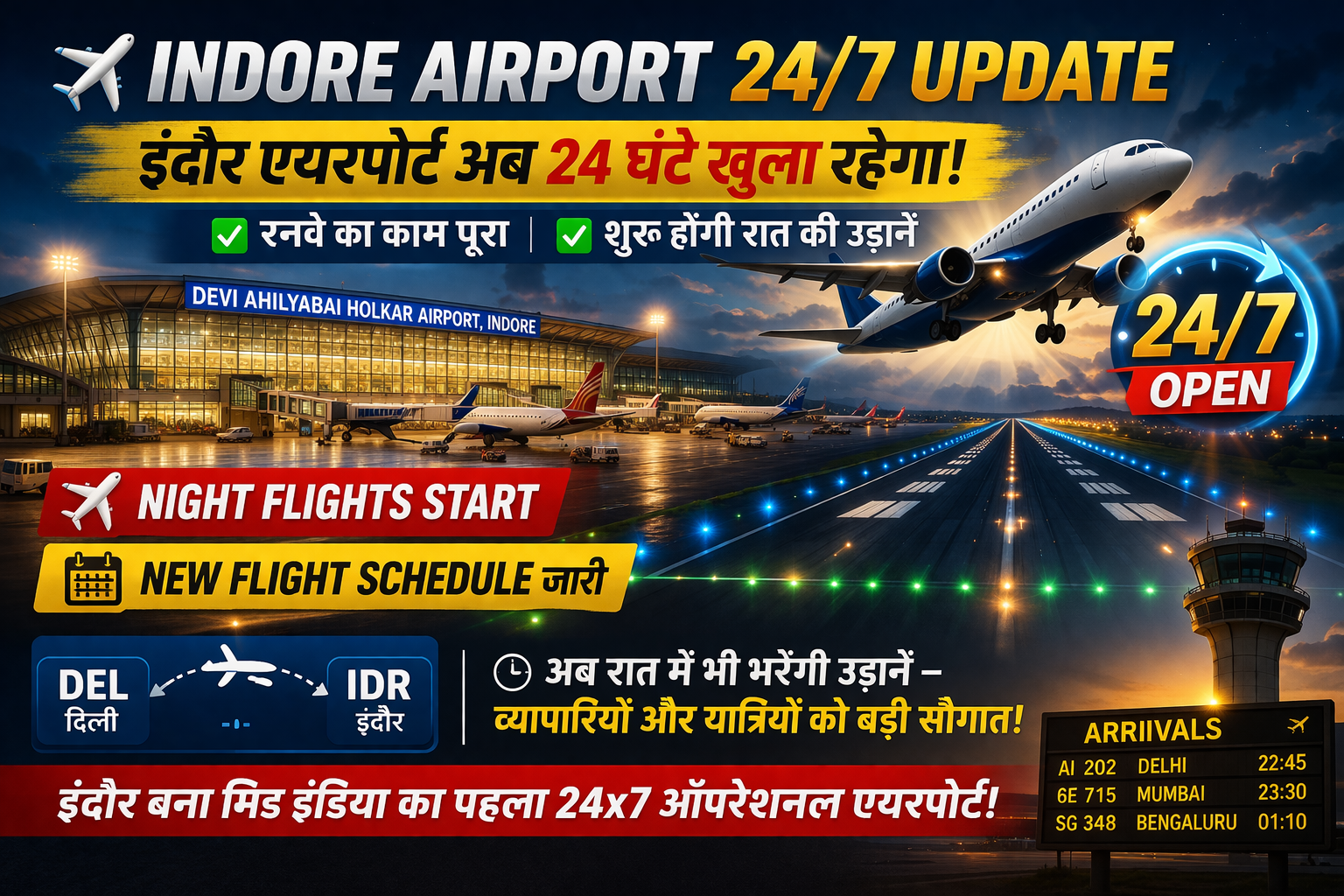 Indore Airport 24/7 Update: इंदौर एयरपोर्ट अब 24 घंटे संचालित होगा, रात की उड़ानों का पूरा शेड्यूल मध्य प्रदेश के…