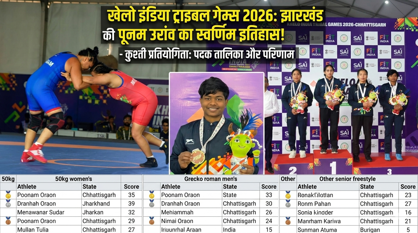 खेलो इंडिया ट्राइबल गेम्स 2026: अम्बिकापुर में कुश्ती का रोमांच, पूनम उरांव ने रचा इतिहास प्रथम खेलो इंडिया ट्राइबल गेम्स…