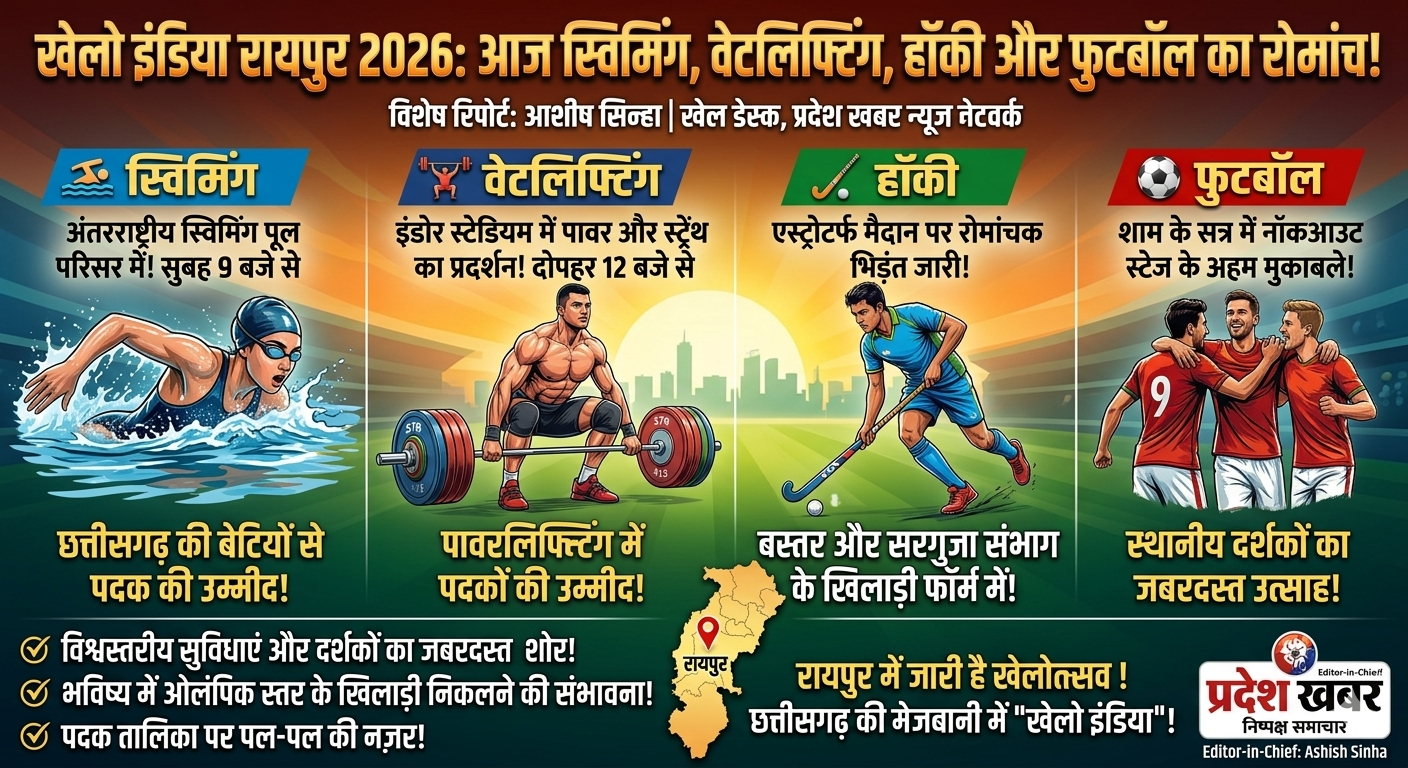 Khelo India Raipur: Live Updates | Pradesh Khabar खेलो इंडिया रायपुर: आज मैदान और पूल में दिखेगा दमखम, स्विमिंग से…