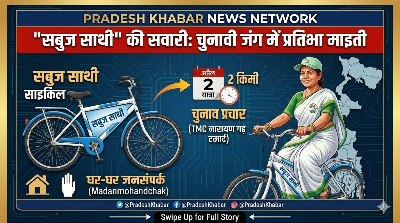 Narayangarh TMC Candidate Pratibha Maiti Cycles for Campaign – Pradesh Khabar ‘सबुज साथी’ की सवारी और घर-घर प्रचार: नारायणगढ़ TMC…