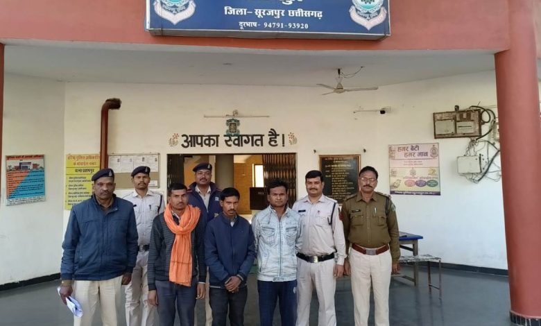 मामले की सूचना पर पुलिस अधीक्षक सूरजपुर श्री रामकृष्ण साहू (भा.पु.से.) ने धोखाधड़ी के आरोपियों की जल्द गिरफ्तार के निर्देश थाना प्रभारी को दिए। अतिरिक्त पुलिस अधीक्षक मधुलिका सिंह व एसडीओपी प्रतापपुर अमोलक सिंह के मार्गदर्शन में थाना प्रतापपुर की पुलिस ने दबिश देकर आरोपी अंकित गुप्ता पिता शिवब्रत गुप्ता उम्र 22 वर्ष, अनुज कुमार पिता विजय प्रसाद गुप्ता उम्र 31 वर्ष व प्रदीप गुप्ता उर्फ कुन्दन पिता स्व. मोतीलाल उम्र 35 वर्ष निवासी ग्राम दुरती, थाना प्रतापपुर को पकड़ा। पूछताछ पर आरोपियों ने अपना जुर्म स्वीकार करते हुए बताया कि ठगी की राशि को तीनों बांट लिए और पैसों को निजी उपयोग में खर्च कर दिए, मामले में तीनों आरोपियों को गिरफ्तार किया गया। इस कार्यवाही में थाना प्रभारी प्रतापपुर लक्ष्मण सिंह धुर्वे, एसआई नवलकिशोर दुबे, एएसआई मंत्री राम मिंज, प्रधान आरक्षक राजेश यादव, रामाधीन श्यामले, मनोज केरकेट्टा, आरक्षक प्रवीण सिंह व अवधेश कुशवाहा सक्रिय रहे।