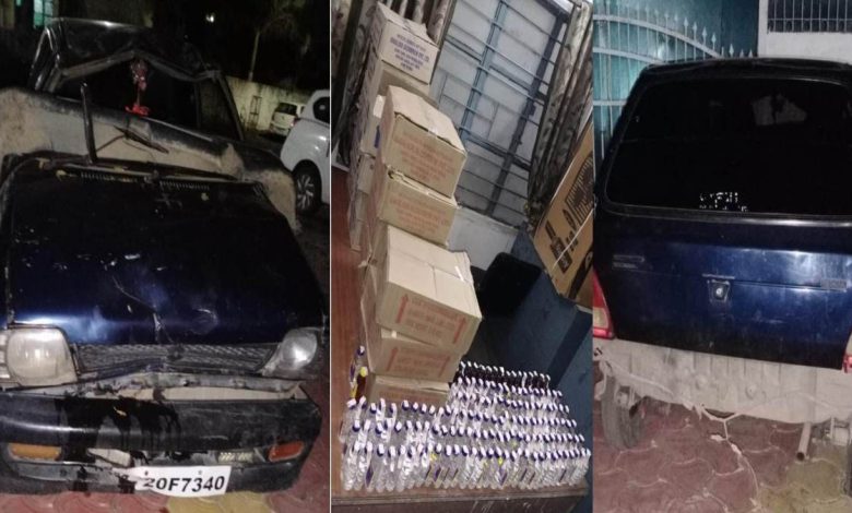 पुलिस को देख आरोपी ने अंधाधुंध भगाई कार, कई गाड़ियों को टक्कर मार पलटी, शराब के साथ तस्कर गिरफ्तार