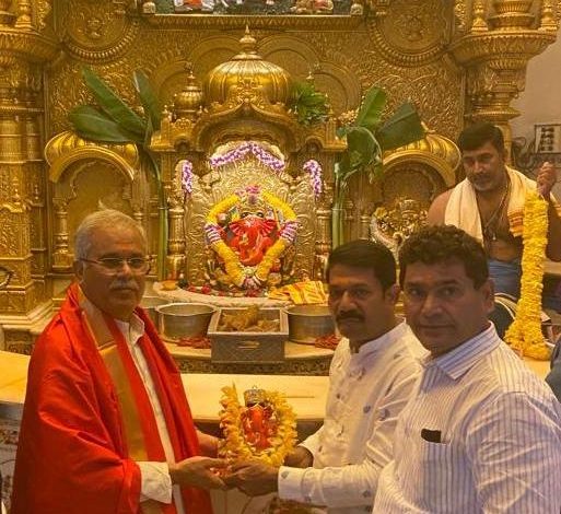 मुख्यमंत्री भूपेश बघेल ने मुंबई में सिद्धिविनायक मंदिर में की पूजा, प्रदेशवासियों की सुख-समृद्धि की कामना की