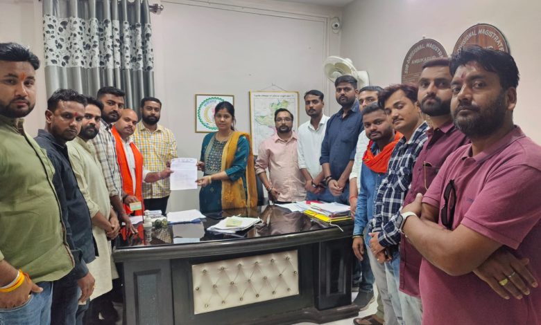 शराब की दुकानों में मिलावटखोरी की शिकायत के संबंध में एस.डी.एम. को ज्ञापन