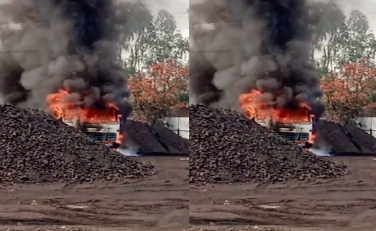 कोयला खाली करते समय ट्रक में लगी भीषण आग, जिंदा जल गया ड्राइवर … सामने आई ये बड़ी वजह …
