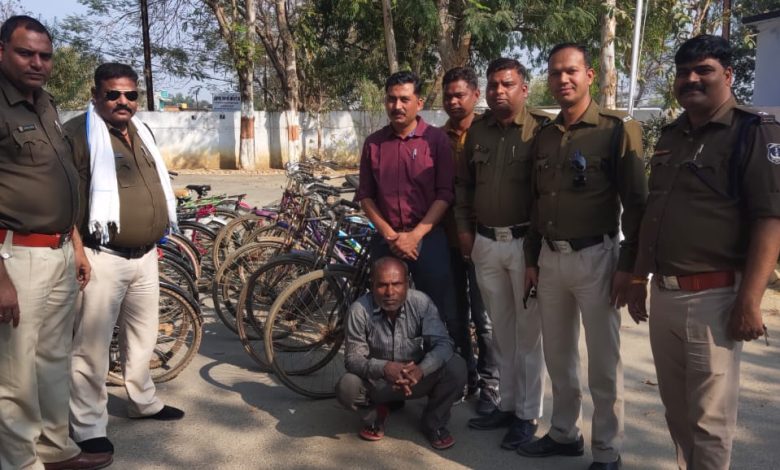 गोपाल सिंह विद्रोही विश्रामपुर -शातिर साइकिल चोर को जयनगर पुलिस ने गिरफ्तार कर उसके पास से 21 साइकिले बरामद की है।