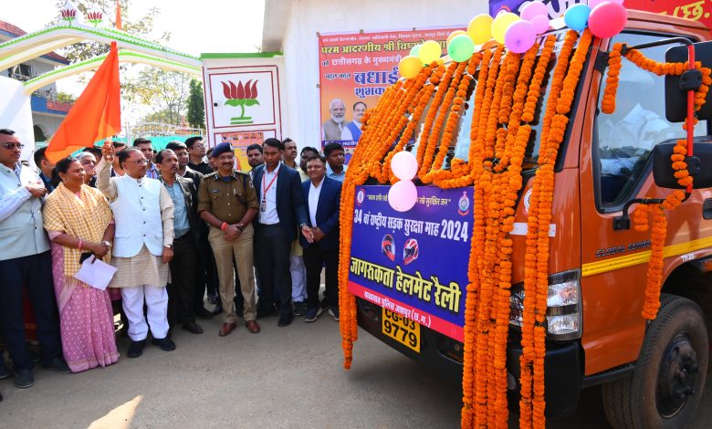 मुख्यमंत्री विष्णुदेव साय ने हेलमेट जागरूकता रैली और अंजोर रथ को बगिया निवास से किया रवाना