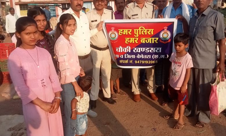 बेमेतरा – पुलिस अधीक्षक रामकृष्ण साहू के द्वारा सामुदायिक पुलिसिंग के लिए हमर पुलिस हमर बजार अभियान की शुरुआत किया गया हैं जिसके माध्यम से आमजनों को जिले के हॉट/बाजारों एवं ग्रामों में जागरूकता अभियान चलाया जा रहा हैैं। जिस पर अतिरिक्त पुलिस अधीक्षक श्रीमती ज्योति सिंह, एसडीओपी बेमेतरा मनोज तिर्की, एसडीओपी बेरला तेजराम पटेल, डीएसपी राजेश कुमार झा, डीएसपी कमल नारायण शर्मा, डीएसपी श्रीमती कौशिल्या साहू के मार्गदर्शन में 12 अप्रेल को हमर पुलिस हमर बजार के माध्यम से थाना परपोडी प्रभारी उप निरीक्षक ओंकार प्रसाद साहू, थाना साजा प्रभारी उप निरीक्षक राजकुमार साहू, पुलिस चौकी संबलपुर प्रभारी सहायक उप निरीक्षक रेशम लाल भास्कर एवं पुलिस चौकी खण्डसरा प्रभारी सहायक उप निरीक्षक सुभाष सिंह व थाना परपोडी, साजा, चौकी खण्डसरा, संबलपुर स्टाफ के द्वारा परपोडी, बीजा (साजा) एवं ग्राम ओडिया, खेडा के हॉट/बाजार, ग्राम में आस पास के ग्रामीण अंचल से आये आम नागरिकगणो को चौपाल लगाकर जागरूक किया गया। आमजन को साइबर अपराध, फर्जीकाल ठगी के संबंध में अवगत कराते हुये अन्य कानूनी जानकारियां दी गई। सायबर पहरी के संबंध मे ग्रामीणजनों को जागरूक किया गया। नशा मुक्ति को लेकर बताया कि नशा शारीरिक समस्याओं के साथ ही आर्थिक और सामाजिक स्तर पर भी नुकसान का कारण बनता हैैं, साथ ही यातायात के नियमों का हमेशा पालन करने एवं यातायात सड़क संकेत तथा किसी भी वाहन को चलाने के लिए उस वाहन का रजिस्ट्रेशन कार्ड, इन्श्योरेंस एवं स्वयं का ड्राइविंग लाइसेंस होना कितना आवश्यक हैैं तथा इन सब में से एक के भी अभाव में कितना ज्यादा नुकसान हो सकता हैं इस संबंध में जानकारी दी गई। साथ ही सभी को हेलमेट पहनने के लिए प्रोत्साहित किया गया।