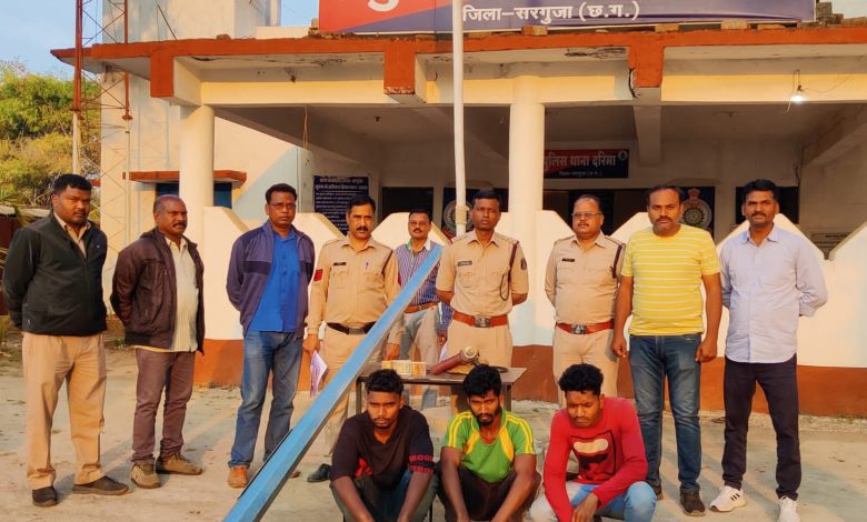 संपूर्ण कार्यवाही मे थाना प्रभारी दरिमा निरिक्षक जॉन प्रदीप लकड़ा, सहायक उप निरीक्षक महेंद्र सिंह, आरक्षक शिवमंगल सिंह, अनुग्रह तिर्की, अखिलेश यादव, संत कुमार शामिल रहे।
