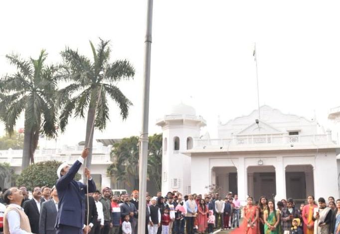 अम्बिकापुर 26 जनवरी 2023/ 74 वें गणतंत्र दिवस के पावन अवसर पर 26 जनवरी 2023 को कलेक्टर कुंदन कुमार ने कलेक्टोरेट परिसर स्थित महात्मा गांधी की प्रतिमा पर माल्यार्पण करने के पश्चात राष्ट्रीय ध्वज फहराया। राष्ट्रीय ध्वज फहराने के बाद राष्ट्रगान गाया गया।