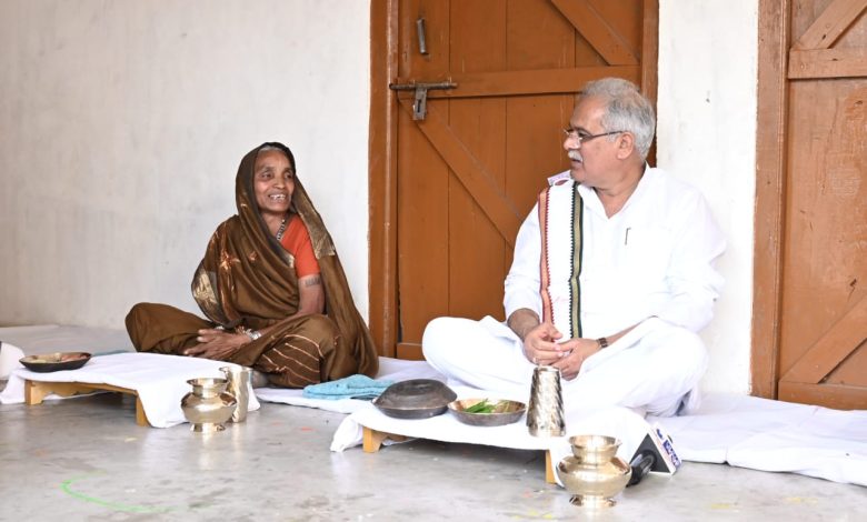 सीएम बघेल ने समोदा में मोतीराम के घर स्वादिष्ट छत्तीसगढ़ी भोजन का लिया आनंद