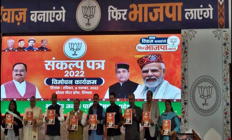 हिमाचल प्रदेश विधानसभा चुनावों के लिए रविवार को भाजपा का संकल्प पत्र जारी।.