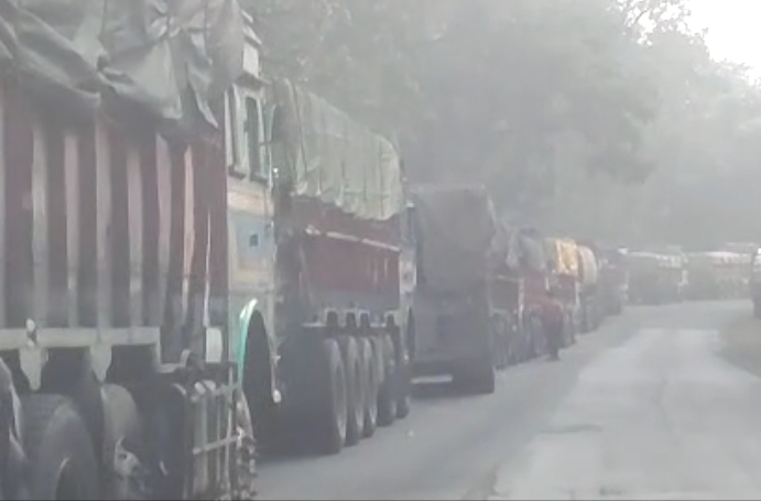 करीब 3 किलोमीटर तक ट्रकों की लंबी कतार लग गई।
