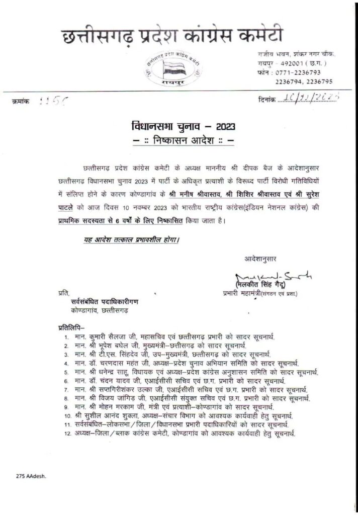 महापौर कांग्रेस पार्टी से सस्पेंड, पार्टी विरोधी गतिविधियों में थे संलिप्त