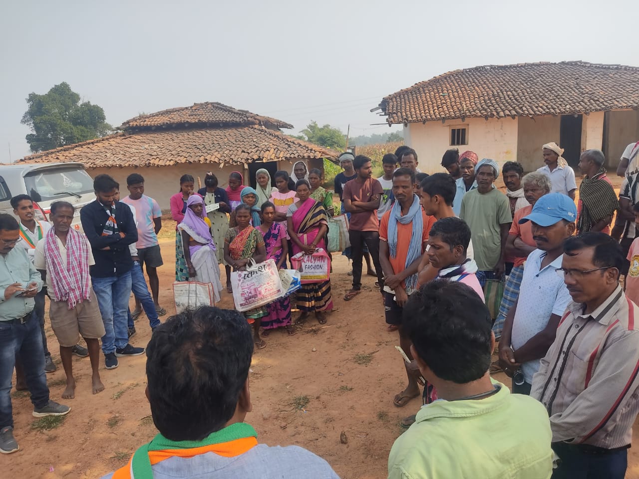 बलरामपुर : राजपुर में जनसंपर्क कर लोगों से कांग्रेस के लिए मांगा समर्थन कांग्रेस प्रत्याशी विजय पैकरा।