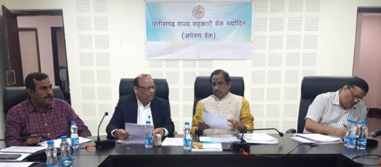 रायपुर, 17 फरवरी 2022अपेक्स बैंक के अध्यक्ष बैजनाथ चन्द्राकर ने आज नवा रायपुर स्थित अपेक्स बैंक मुख्यालय में प्रदेश के जिला सहकारी केन्द्रीय बैंक के मुख्य कार्यपालन अधिकारियों की बैठक ली। उन्होंने राज्य में समर्थन मूल्य पर धान खरीदी के लिए सहकारिता विभाग के अधिकारियों-कर्मचारियों के सहयोग की सराहना की। श्री चंद्राकर ने समितियों से धान के उठाव की स्थिति की भी समीक्षा की। उन्होंने कहा कि उपार्जित धान के सुखत एवं नुकसान को कम से कम करने के लिए तेजी से उठाव जरूरी है। सहकारिता विभाग के अधिकारियों को मार्कफेड के अधिकारियों से समन्वय कर सोसायटियों से धान का तेजी से उठाव करने के निर्देश दिए गए। सहकारी समितियों में अभी 22.71 लाख मेट्रिक टन धान का उठाव किया जाना शेष है।