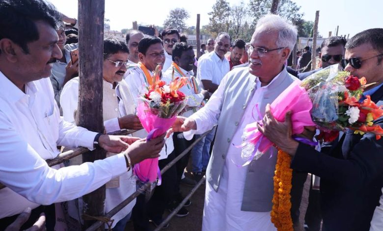 खरसिया पहुंचे सीएम बघेल, हेलिपैड पर हुआ आत्मीय स्वागत