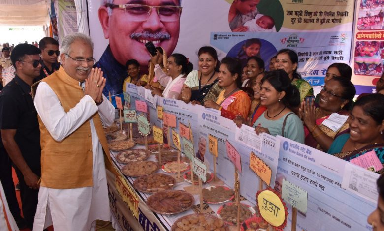 रायपुर : मुख्यमंत्री बघेल ने मनेन्द्रगढ़-चिरमिरी-भरतपुर जिले के शुभारंभ के मौके पर स्टॉलो का किया अवलोकन