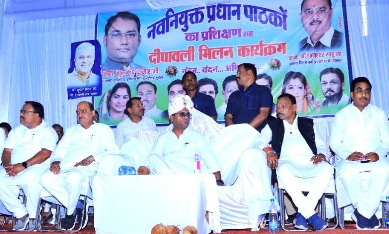 लोक स्वास्थ्य यांत्रिकी और मुंगेली जिले के प्रभारी मंत्री गुरू रूद्रकुमार आज मुंगेली के डॉ. श्यामा प्रसाद मुखर्जी स्टेडियम में नवनियुक्त प्रधानपाठकों के प्रशिक्षण-सह दीपावली मिलन कार्यक्रम में शामिल हुए।
