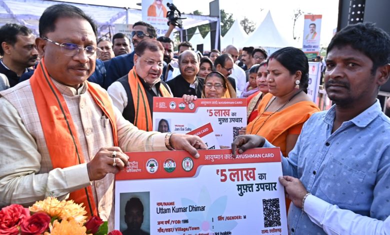 विकसित भारत संकल्प यात्रा के शुभारंभ के अवसर पर राजधानी रायपुर के स्वामी विवेकानंद सरोवर उद्यान में विभिन्न विभागों द्वारा स्टॉल लगाए गए। इसका मुख्यमंत्री विष्णु देव साय ने अवलोकन किया। मुख्यमंत्री साय ने दो हितग्राही दीपक वाधवानी को प्रधानमंत्री मुद्रा योजना के तहत 8 लाख रूपए और शबनूर बानो को पीएम स्वनिधि योजना के तहत 20 हजार रूपए का चेक प्रदान किया। स्वास्थ्य विभाग द्वारा 176 हितग्राहियों के आयुष्मान कार्ड का पंजीयन किया गया। साथ ही मुख्यमंत्री ने आयुष्मान कार्ड का वितरण भी किया।
