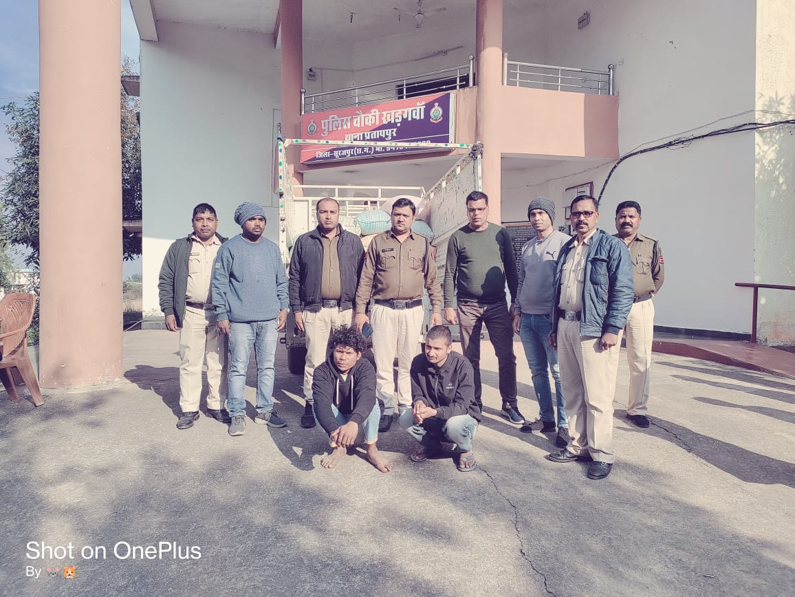 जिसके रिपोर्ट पर धारा 457,380 भा.द.स. का अपराध पंजीबद्ध कर विवेचना में लिया गया। इस दौरान विवेचना मुखबिर के सूचना पर आरोपी नारद सिंह पिता संग्राम सिंह उम्र 22 साल निवासी ग्राम मानपुर चैकी खड़गवां को पकड़कर पुछताछ करने पर धान चोरी करना स्वीकार किया और अजीत गुप्ता पिता शिवकुमार गुप्ता उम्र 26 साल निवासी ग्राम मानपुर के साथ मिलकर धान चोरी कर रात्री में ही धान को पिकप में लोड कर अजीत गुप्ता के घर पर रख दिया एवं अपने हिस्सा का 15 हजार रूपये जिससे नया मोबाइल खरीद लिया है। घटना में प्रयुक्त पिकप वाहन क्रं. सीजी 29 एई 3858 एवं 20 बोरी धान अजीत गुप्ता के कब्जे से जप्त किया जाकर दोनों आरोपीयो को गिरफ्तार कर लिया। कार्यवाही में चैकी प्रभारी बृजकिशोर पांण्डेय, सउनि कृष्ण कुमार सिंह, प्र.आर. संजय सिंह यादव, आरक्षक मनोज राय अनिल एक्का राकेश सिदार सक्रिय रहे।