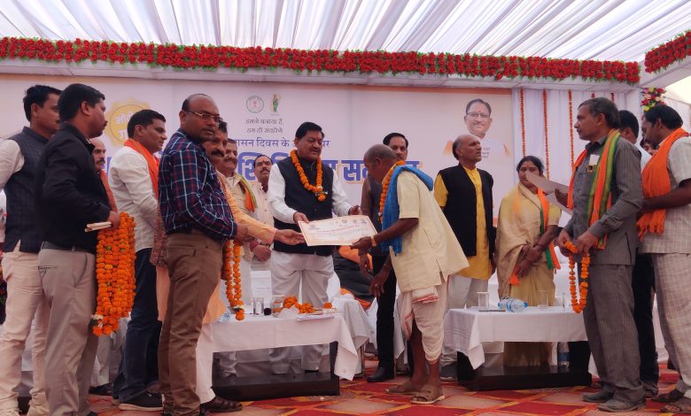 कैबिनेट मंत्री दयाल दास बघेल ने नवागढ़ में किसानों को धान बोनस राशि प्रमाण-पत्र सौपें