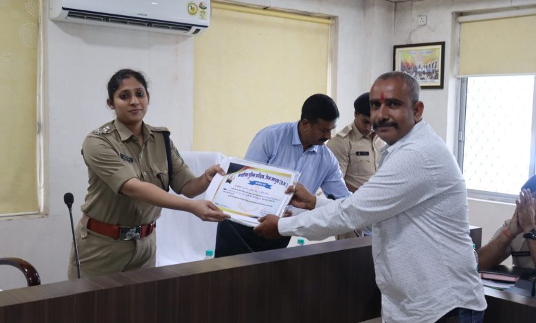 दोहरे हत्याकांड का खुलासा करने वाले अधिकारियों/ कर्मचारियों को प्रशस्ति पत्र देकर किया गया सम्मानित।