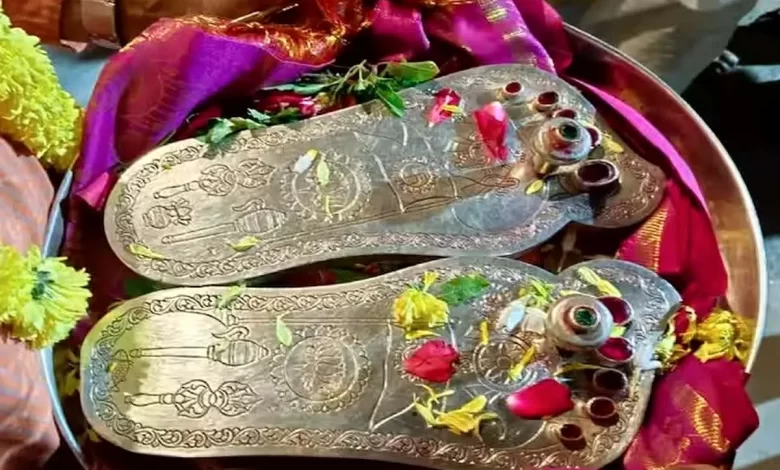 श्री राम की चरण पादुका के दर्शन के लिए उमड़े भक्त