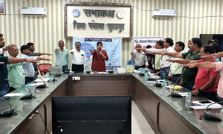 सूरजपुर//आगामी लोकसभा निर्वाचन 2024 को स्वतंत्र एवं निष्पक्ष ढंग से सम्पन्न कराने हेतु जिला कलेक्टर एवं जिला निर्वाचन अधिकारी रोहित व्यास के निर्देशन में एवं प्रशिक्षण नोडल अधिकारी श्रीमती कमलेश नंदनी साहू मुख्य कार्यपालन अधिकारी जिला पंचायत सूरजपुर की उपस्थिति में माइक्रो ऑब्जर्वर को प्रथम प्रशिक्षण जिला पंचायत सूरजपुर के सभाकक्ष में दिया गया। जिला स्तरीय मास्टर ट्रेनर पी.सी. सोनी प्राचार्य ने बताया कि माइक्रो ऑब्जर्वर को सामान्य प्रेक्षक के नियंत्रण एवं निर्देशन में कार्य करना है अतः सभी माइक्रो ऑब्जर्वर के पास सामान्य प्रेक्षक का नाम एवं मोबाईल नम्बर होना चाहिए। माइक्रो ऑब्जर्वर उस मतदान केन्द्र में सिर्फ प्रेक्षक हैं जो मतदान दिवस को मतदान केन्द्र में उपस्थित होकर मतदान दल द्वारा की जानी वाली मतदान प्रक्रिया का पर्यवेक्षण करेंगे। ये मतदान दल के सदस्य नहीं है। वे किसी भी स्थिति में मतदान दल के सदस्य के रूप में कार्य नहीं करेंगे। इनकी नियुक्ति जिला निर्वाचन अधिकारी द्वारा आयोग के निर्देशानुसार क्रिटिकल मतदान केन्द्र में की जाती हैं। इन्हें जिला निर्वाचन अधिकारी द्वारा नियुक्ति आदेश एवं फोटो पहचान पत्र दिया जाएगा। इन्हे जिला निर्वाचन अधिकारी की व्यवस्था द्वारा मतदान केन्द्र में पहुँचाया जायेगा जो मतदान केन्द्र में सम्पन्न होने वाली सम्पूर्ण मतदान प्रक्रिया का सूक्ष्मता पूर्वक पर्यवेक्षण कर अपनी रिपोर्ट 18 बिंदुओं के अंतर्गत सामान्य प्रेक्षक या प्रेक्षक प्रतिनिधि को बंद लिफाफा में सौपेंगे। इन्हे यह बताया गया कि माइक्रो आब्जर्वर को मतदान केन्द्र पर चलने वाली निम्न प्रक्रिया का अवलोकन करेंगे- वास्तविक मतदान प्रारंभ होने के 90 मिनट पूर्व से प्रारंभ होने वाली मॉक पोल प्रक्रिया की निगरानी, मॉक पोल के डाटा को हटाया जाना, वीवीपैट के ड्रॉपबॉक्स से मॉक पोल के पेपर पर्चियों को निकालकर ड्रॉपबॉक्स को खाली करना, वास्तविक मतदान के पूर्व मतदान मशीन में सीलिंग प्रक्रिया का अवलोकन, मॉक पोल प्रमाण पत्र तैयार करनी की निगरानी, मतदान अभिकर्ता की उपस्थिति एवं उनका आचरण, एन्ट्री पास सिस्टम की निगरानी, मतदान केन्द्र पर सुनिश्चित न्यूनतम सुविधाएं- बिजली, पेयजल, शौचालय, छाया, रैम्प, मतदाता सुविधा पोस्टर की निगरानी, मतदाता के पहचान के आवश्यक दस्तावेज- वोटर कार्ड या वोटर कार्ड नहीं होने पर 12 अन्य वैकल्पिक दस्तावेज से मतदान करने की निगरानी, अमिट स्याही की उपयोग, ईवीएम व वीवीपैट के रिप्लेसमेंट की निगरानी, मत की गोपनीयता की निगरानी, मतदान के दौरान अन्य शिकायतों की निगरानी कर अपना रिपोर्ट तैयार कर प्रस्तुत करने के संबंध में विस्तार से बताया गया। उन्हें मतदान केन्द्र म