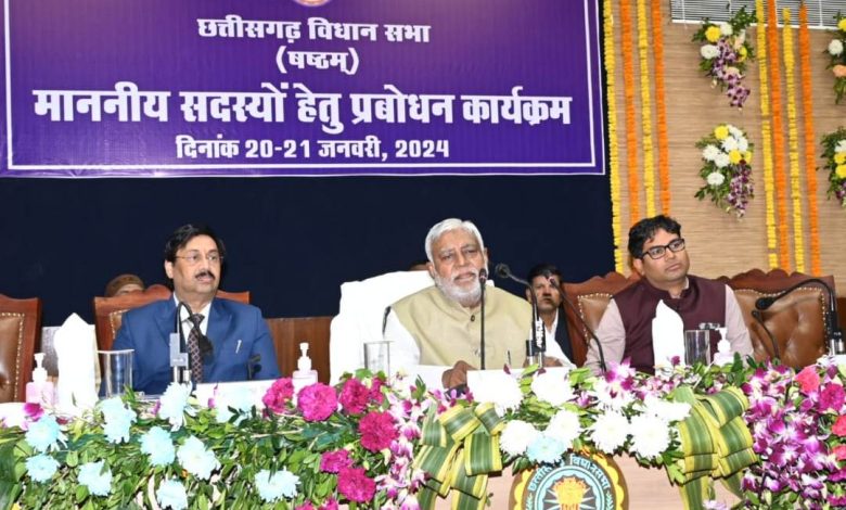 रायपुर/ छत्तीसगढ़ विधानसभा के नवनिर्वाचित विधायकों को विधानसभा की कार्यप्रणाली एवं संसदीय प्रक्रियाओं से अवगत कराने के लिए आयोजित दो दिवसीय प्रबोधन कार्यक्रम के द्वितीय दिवस के प्रथम सत्र में अतिथि वक्ता के रूप में विधायक एवं पूर्व मंत्री अजय चंद्राकर ने प्रश्नकाल का महत्व, प्रश्नों के प्रकार, आधे घंटे की चर्चा, विषयों के संबंध में विस्तृत जानकारी दी। वहीं कार्यक्रम के द्वितीय सत्र में पूर्व विधानसभा अध्यक्ष डॉ. प्रेम प्रकाश पाण्डेय ने विधायकों को बजट, बजट बनाने की प्रक्रिया, उसके प्रकार तथा निर्धारण के बारे में विस्तार से जानकारी दी गई। इस मौके पर स्वास्थ्य मंत्री श्याम बिहारी जायसवाल, वित्त मंत्री ओ.पी. चौधरी, विधानसभा सचिव दिनेश शर्मा भी उपस्थित थे।