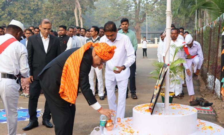बीजापुर / 75 वें गणतंत्र दिवस पर 26 जनवरी को कलेक्टर अनुराग पाण्डेय ने कलेक्टोरेट परिसर में राष्ट्रीय ध्वज फहराया। राष्ट्रीय ध्वज फहराने के बाद राष्ट्रगान गाया गया। तत्पश्चात कलेक्टोरेट परिसर में स्थित महात्मा गांधी की प्रतिमा पर माल्यार्पण कर सभी अधिकारी.कर्मचारियों को गणतंत्र दिवस बधाई एवं शुभकामनाएं दी। इस अवसर पर संयुक्त कलेक्टर पवन कुमार प्रेमी, जिला शिक्षा अधिकारी बीआर बघेल, डिप्टी कलेक्टर जागेश्वर कौशल, दिलीप उईके, उत्तम सिंह पंचारी सहित जिला प्रशासन के अधिकारी-कर्मचारी उपस्थित थे।