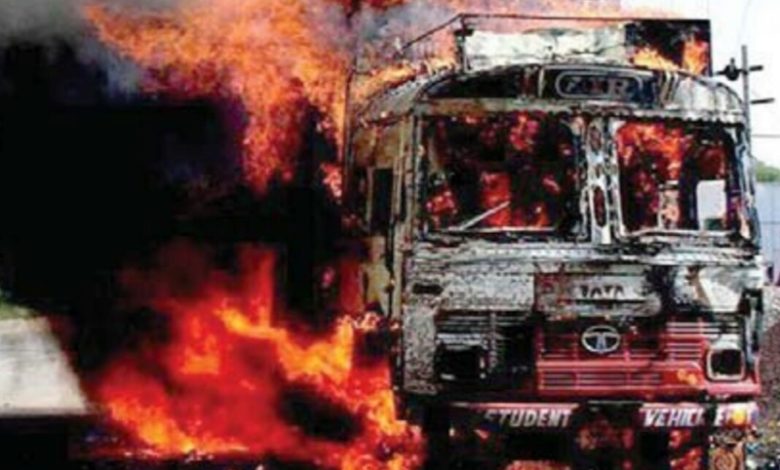 ट्रक में अचानक लगी भीषण आग, चालक की ऐसे बची जान