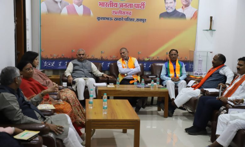 बैठक में मुख्य रूप से प्रदेश अध्यक्ष किरण सिंह देव, मुख्यमंत्री छ.ग. विष्णु देव साय, राष्ट्रीय उपाध्यक्ष सुश्री सरोज पाण्डेय, सुश्री लता उसेंडी, प्रदेश महामंत्री (संगठन) पवन साय, उपमुख्यमंत्री विजय शर्मा, मंत्रीगण बृजमोहन अग्रवाल, रामविचार नेताम, ओ.पी. चौधरी, केदार कश्यप, विधायक धरमलाल कौशिक, श्रीमती शालिनी राजपूत उपस्थित थे ।