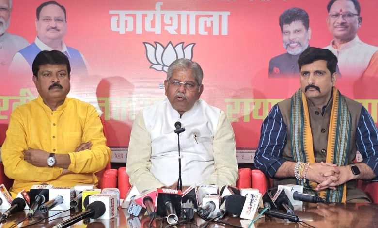 राहुल गांधी द्वारा न्याय यात्रा के दौरान दिए गए आपत्तिजनक बयानों पर आज आयोजित प्रेस वार्ता में पूर्व विधानसभा अध्यक्ष वरिष्ठ विधायक धरमलाल कौशिक ने कहा