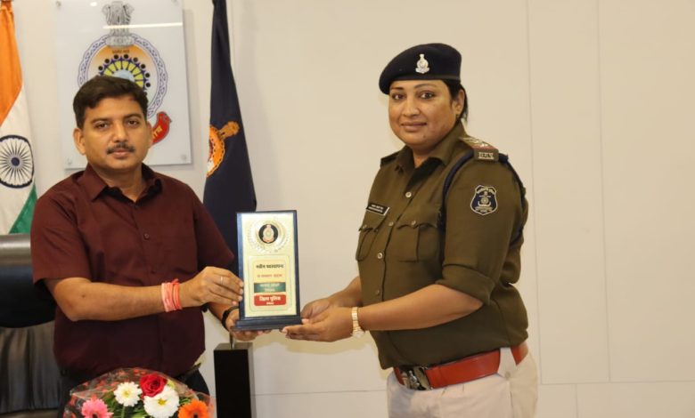 बेमेतरा – जिलें के थाना सिटी कोतवाली बेमेतरा में पदस्थ निरीक्षक अजय कुमार सिन्हा का बेमेतरा जिलेें से स्थानांतरण पर जिला मोहला-मानपुर-अंबागढ चौकी के लिए कार्यमुक्त किया गया। जिन्हें पुलिस अधीक्षक कार्यालय बेमेतरा में विदाई समारोह का आयोजन किया गया। जिन्हे पुलिस अधीक्षक बेमेतरा रामकृष्ण साहू एवं अतिरिक्त पुलिस अधीक्षक पंकज पटेल, एसडीओपी बेमेतरा मनोज तिर्की, एसडीओपी बेरला तेजराम पटेल, डीएसपी राजेश कुमार झा ने स्मृति चिन्ह प्रदान कर सम्मानित कर उन्हें भाव पूर्ण विदाई दी गई। साथ ही उनके स्वस्थ्य, दीर्घायु एवं सुखमय जीवन की कामना की गई। स्थानांतरित निरीक्षक अजय कुमार सिन्हा ने बेमेतरा जिलें में लगभग 3 साल का बहुत अच्छा कार्यकाल रहा, बहुत से गंभीर मामले में उनका अच्छा विवेचना रहा, जिसमें अच्छा सफलता मिली। निरीक्षक अजय कुमार सिन्हा ने बेमेतरा जिलें में बिताये अपने अनुभव को साथ साझा किया एवं पुलिस अधीक्षक रामकृष्ण साहू ने भी निरीक्षक अजय कुमार सिन्हा के कार्यो का प्रशंसा करते हुए उनको उज्जवल भविष्य के लिए शुभकामनाएं दिये। राजपत्रित अधीकारी एवं पुलिस अधीक्षक कार्यालय स्टाफ व अन्य पुलिस स्टाफ भी निरीक्षक अजय कुमार सिन्हा के साथ किये कार्यो का प्रशंसा कर अपने अनुभव को सांझा किये एवं नये जिलें में जाने के लिए उज्जवल भविष्य की शुभकामनाएं दिये। इस अवसर पर निरीक्षक संतोषी ग्रेस, प्रभारी स्टेनो अजय कुमार देवांगन, एसआरसी लिपिक सउनि दीपक गर्जेवाल सहित पुलिस अधीक्षक कार्यालय के समस्त स्टाफ उपस्थित रहें।