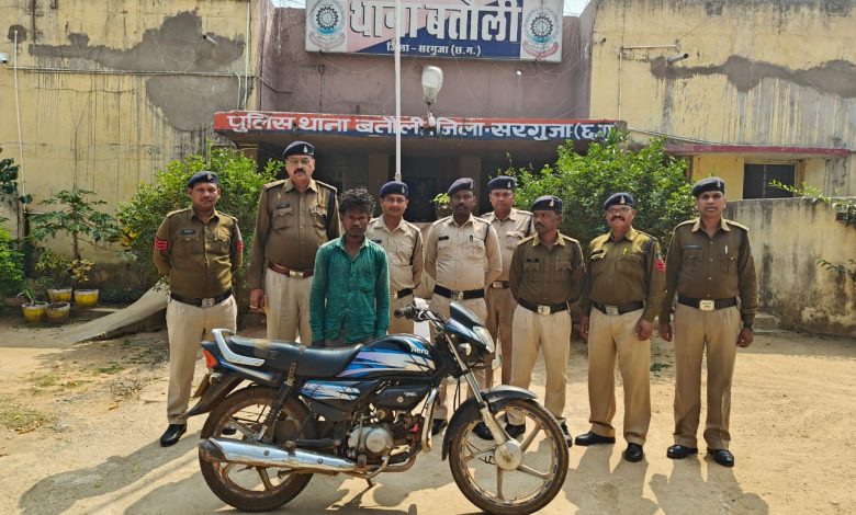 सरगुजा // दुपहिया वाहन चोरी के मामले मे अरविन्द यादव साकिन चिरगा घंटाडीह थाना बतौली का थाना बतौली आकर रिपोर्ट दर्ज कराया गया कि दिनांक 22/02/24 कों प्रार्थी अपने दुपहिया वाहन से बतौली साप्ताहिक बाजार गया हुआ था, जो प्रार्थी बाजार से वापस आकर देखा तो प्रार्थी का मोटरसायकल अपने खड़े स्थान पर नही थी, किसी अज्ञात व्यक्ति द्वारा प्रार्थी के मोटरसायकल कों चोरी कर लिया गया हैं, प्रार्थी कि रिपोर्ट पर अपराध क्रमांक 18/24 धारा 379 भा.द.वि. का अपराध दर्ज कर विवेचना मे लिया गया।