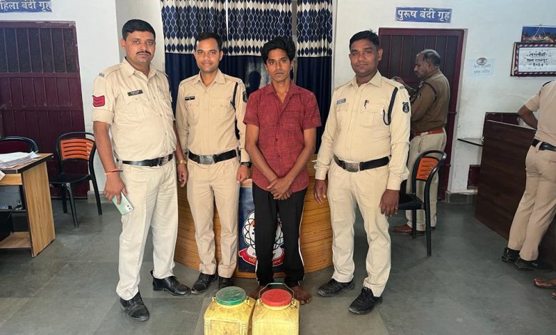 बिलासपुर : पुलिस अधीक्षक रजनेश सिंह के द्वारा जिले में नशे के कारोबार पर अंकुश लगाने निर्देशित किया गया है जिसके परिपालन में अतिरिक्त पुलिस अधीक्षक (ग्रामीण) श्रीमती अर्चना झा एवं श्रीमान अनुविभागीय अधिकारी (पुलिस) कोटा सिद्धार्थ बघेल के मार्गदर्शन में थाना प्रभारी देवेश सिंह राठौर के नेतृत्व में टीम गठित कर अवैध शराब बिक्री करने वालो के विरूद्ध रेड कार्यवाही करने हेतु मुखबिर तैनात किया गया था। जो दिनाँक 29/02/2024 को मुखबिर से सूचना मिला कि साँधीपारा रतनपुर का नरेन्द्र पटेल अपने घर के बाड़ी़ में अवैध रूप से कच्ची महुआ शराब बिक्री करने के लिये रखा हैं। कि मुखबीर की सूचना तस्दीक एवं कार्यवाही हेतु हमराह स्टाफ एवं गवाह के साँधीपारा रतनपुर जाकर घेराबंदी कर साँधीपारा रतनपुर निवासी नरेन्द्र पटेल के घर के बाड़ी से 15-15 लीटर 02 प्लास्टिक के डिब्बे में 30 लीटर महुआ शराब कीमती 6000 रूपये को बरामद किया गया। आरोपी के कब्जे से उक्त शराब को जप्त कर आरोपी के विरूद्ध धारा 34(2) आबकारी एक्ट के कार्यवाही कर आरापी को गिरफ्तार किया गया।
